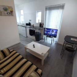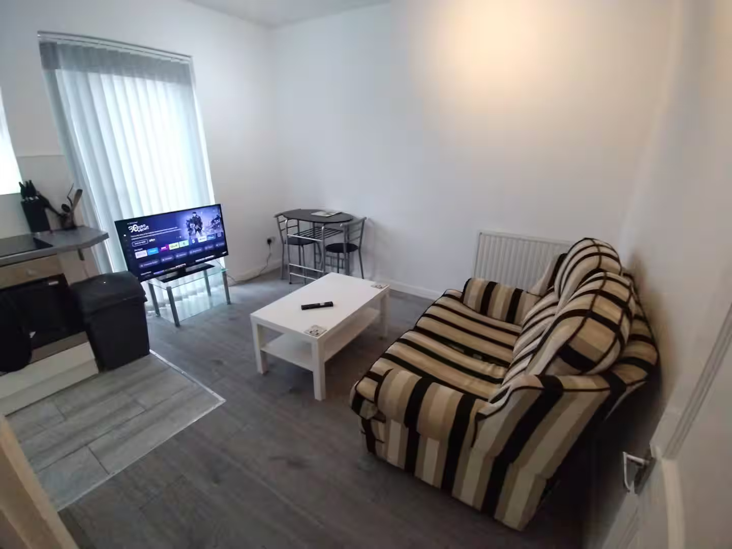A very light ground floor apartment convenient for the town centre with buses every 5-10 minutes and less than 10 minute walk to the local train station.